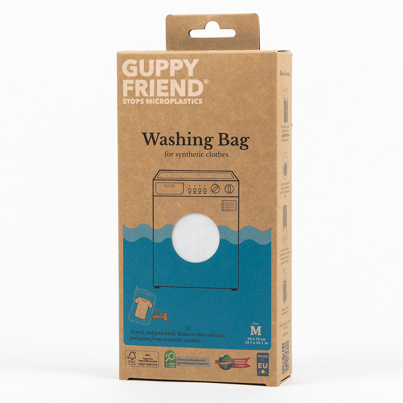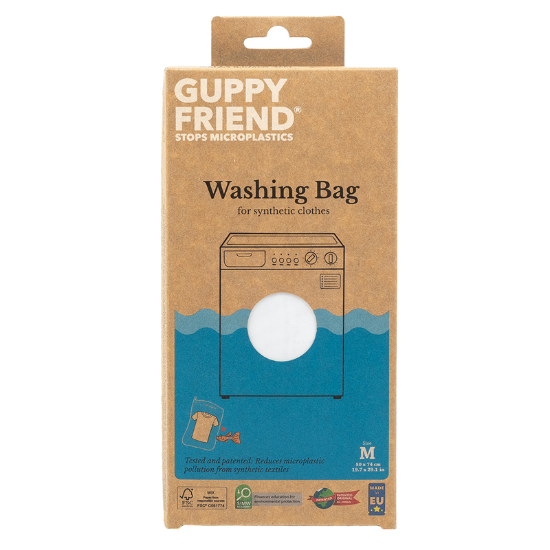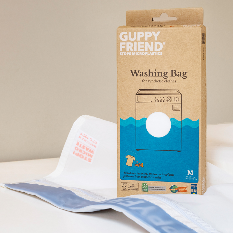 De Guppy Friend Waszak is een zak voor je wasgoed die plastic deeltjes uit spoelwater van je wasmachine filtert.
