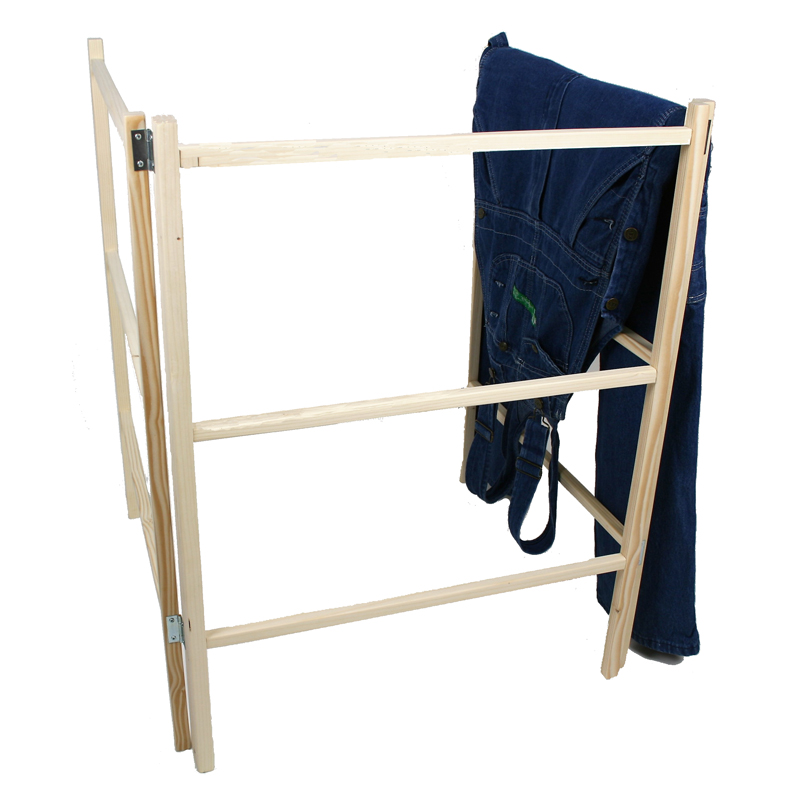 Wil je toch wasknijpers gebruiken? Leg je de was gewoon over het stokje heen. Wil je meer op het rekje hangen dan er ruimte is? Dan vouw je een punt van het wasgoed over het stokje heen en zet je het wasgoed onder het latje aan elkaar vast met een knijper. Even omdenken….zo deed oma het vroeger namelijk ook, voordat de wasknijpers met veertjes waren bedacht.