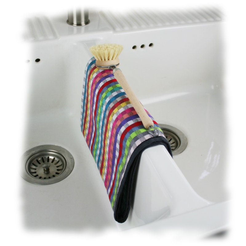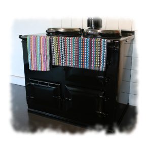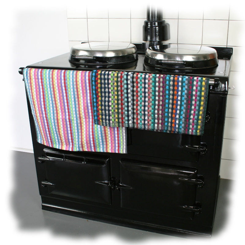 Heb je een AGA of een fornuis met een reling? Dan staat ie natuurlijk ook nog eens gewoon mooi, aan de reling gehangen.  Je kunt hem natuurlijk ook als pannenlap gebruiken of om hete schalen uit de oven te halen.