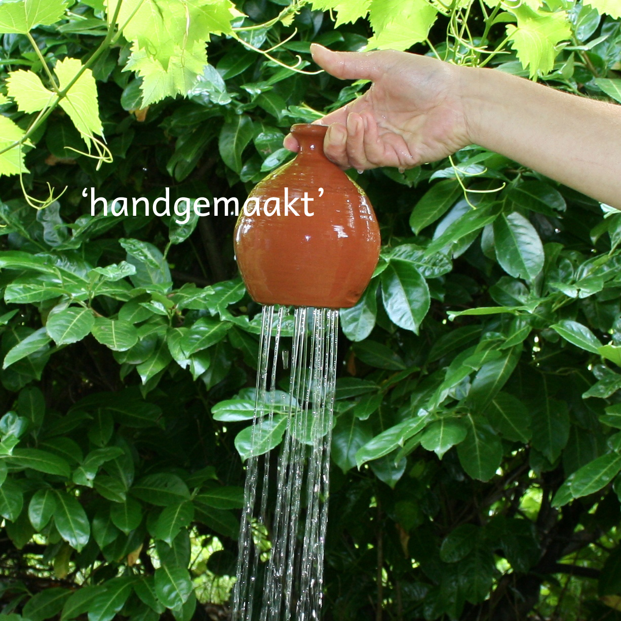 Nadat ik de Plantendouche op een markt had uitgeprobeerd, kon ik hem niet meer uit mijn hoofd zetten en heb hem later via de website besteld en een dag later opgehaald. Ik heb voor de handgemaakte versie gekozen en wat ben ik er blij mee! Een heel leuk, mooi potje die goed zijn werk doet: het opgevangen regenwater (ook duurzaam) giet je perfect over je planten, ideaal voor zaailingen en werkt enorm rustgevend.