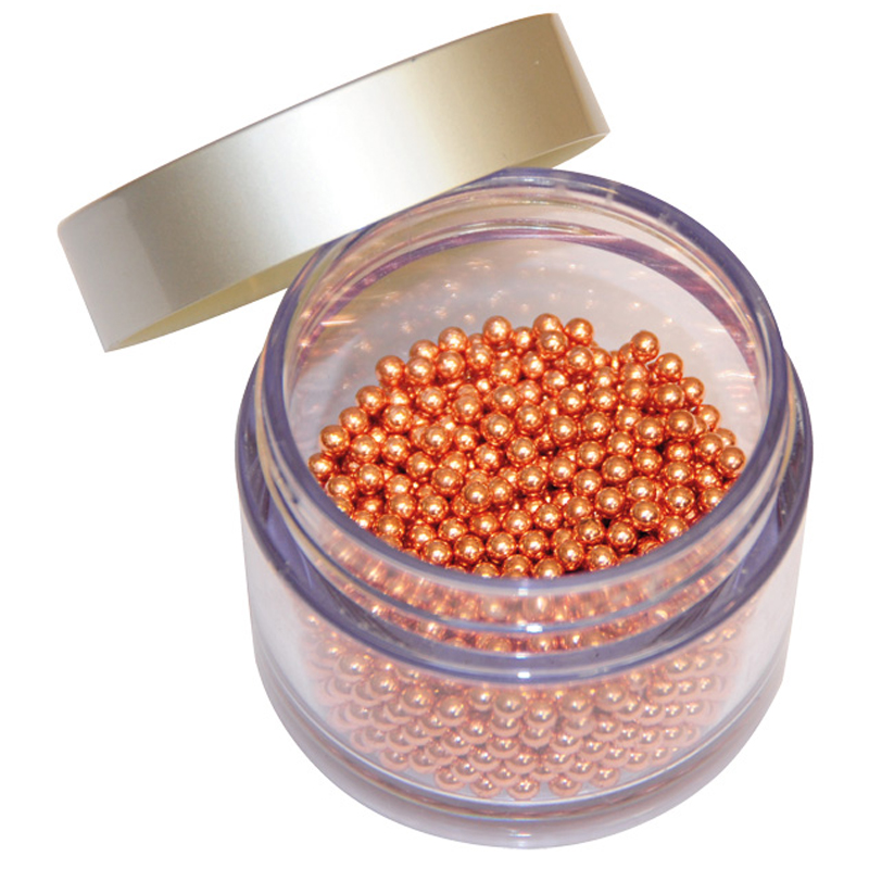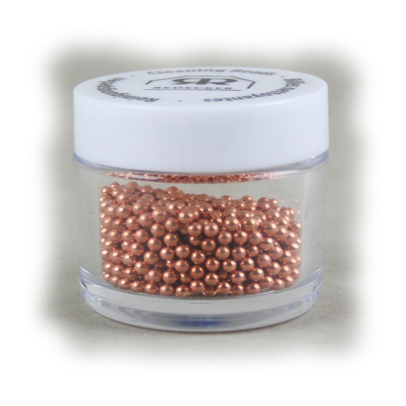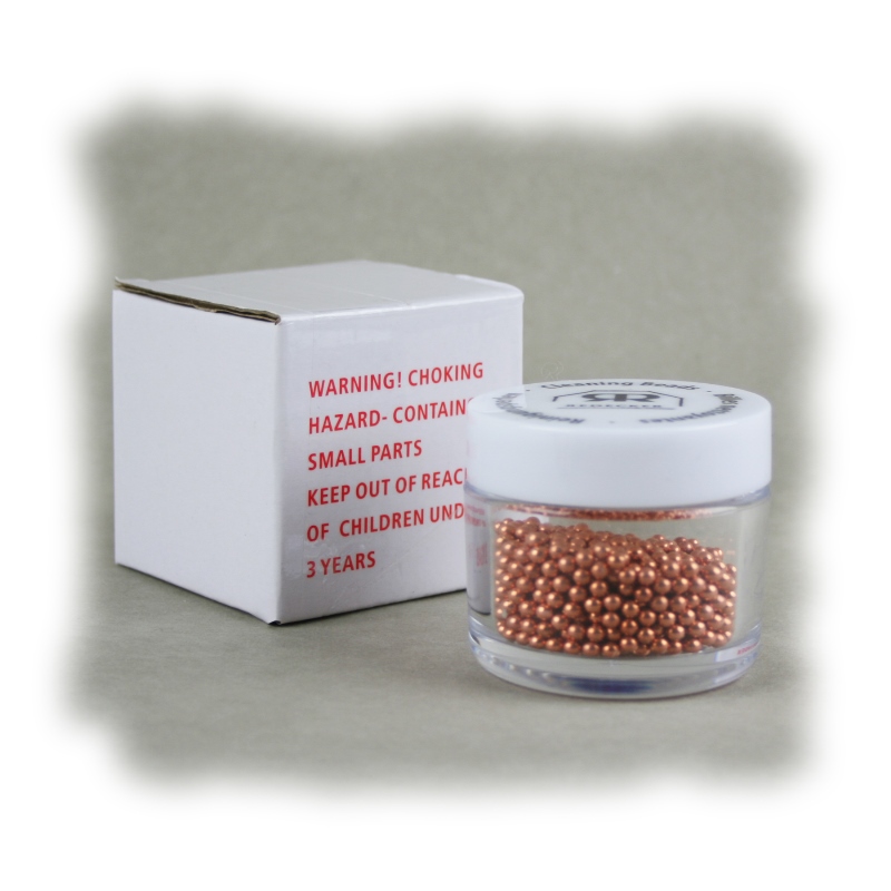 De parels zijn gemaakt van koolstofstaal en voorzien van een laagje koper. Vooral dat laatste is belangrijk en onderscheidend van andere reinigingsparels. Want koper krast niet, het is zachter dan de meeste andere metalen en oppervlakten en wordt daarom ook gebruikt als materiaal voor schuursponsje en schuurdoekjes. Dat is misschien wel prettig bij een kostbare karaf! Bovendien zorgt het grote aantal parels voor een snelle en zachte werking.