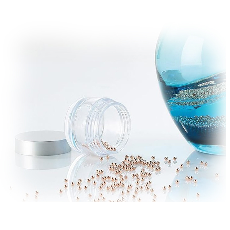 Er zitten ca. 1000 reinigingsparels met een diameter van 3 millimeter in een glazen potje met schroefdeksel. Zo kan je ze altijd goed opbergen en bewaren. De potjes hebben een diameter van 5,5 cm. En passen makkelijk in een keukenlade. De deksel wijkt af van de foto’s op deze pagina en is wit met daarop het logo van de producent.