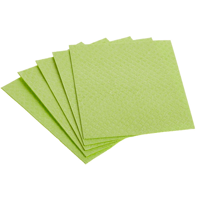 De sponsdoekjes zijn voor 70% van cellulose (houtpulp) gemaakt en daarom zijn ze zo super absorberend. Daarnaast is er 30% katoen in verwerkt, die zorgt voor de stevigheid. De kleurstof is geheel plantaardig en de sponsdoekjes zijn dus helemaal gemaakt van biologisch afbreekbare grondstoffen. Omdat voor het cellulose proces een zout van minerale oorsprong wordt gemaakt is er vele minder belasting van het milieu.