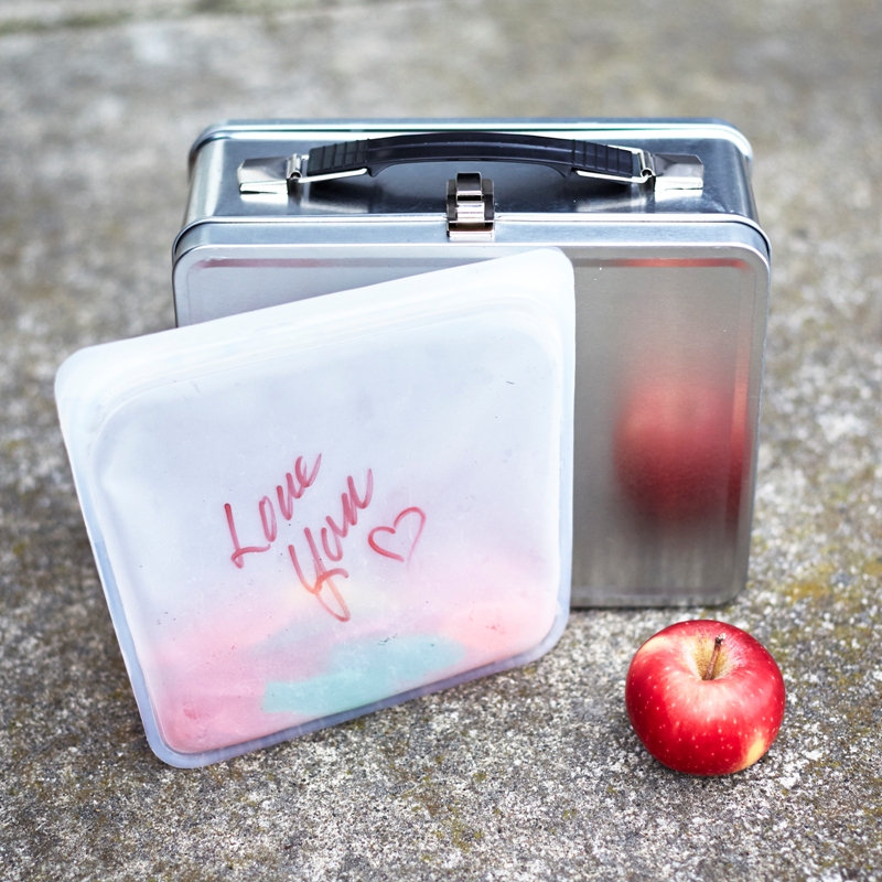 Even over de vormgeving: Heel slim bedacht is hij net niet helemaal vierkant. Want de kant waar de opening in zit (19 cm)  is iets breder dan de onderkant (18 cm) . Zo kan je de Stasher Bag makkelijk openen om bijvoorbeeld je boterham er in te schuiven. Eenvoudig dicht maken door de beide randen op elkaar te drukken. Haal overtollige lucht er uit door de Stasher eerst een beetje aan te drukken voordat je hem sluit.