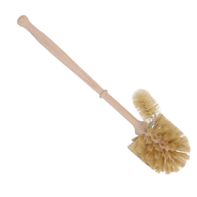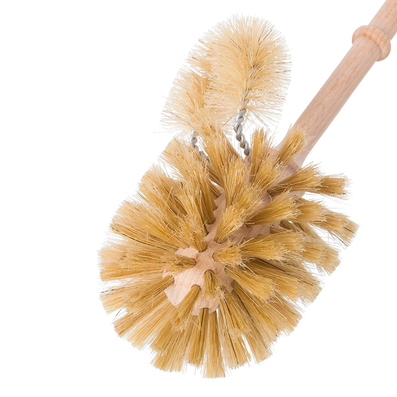 Een toiletborstel van natuurlijke materialen, met handige randreiniger