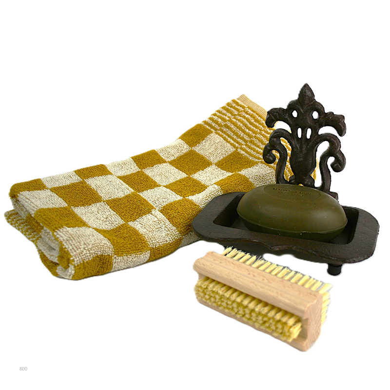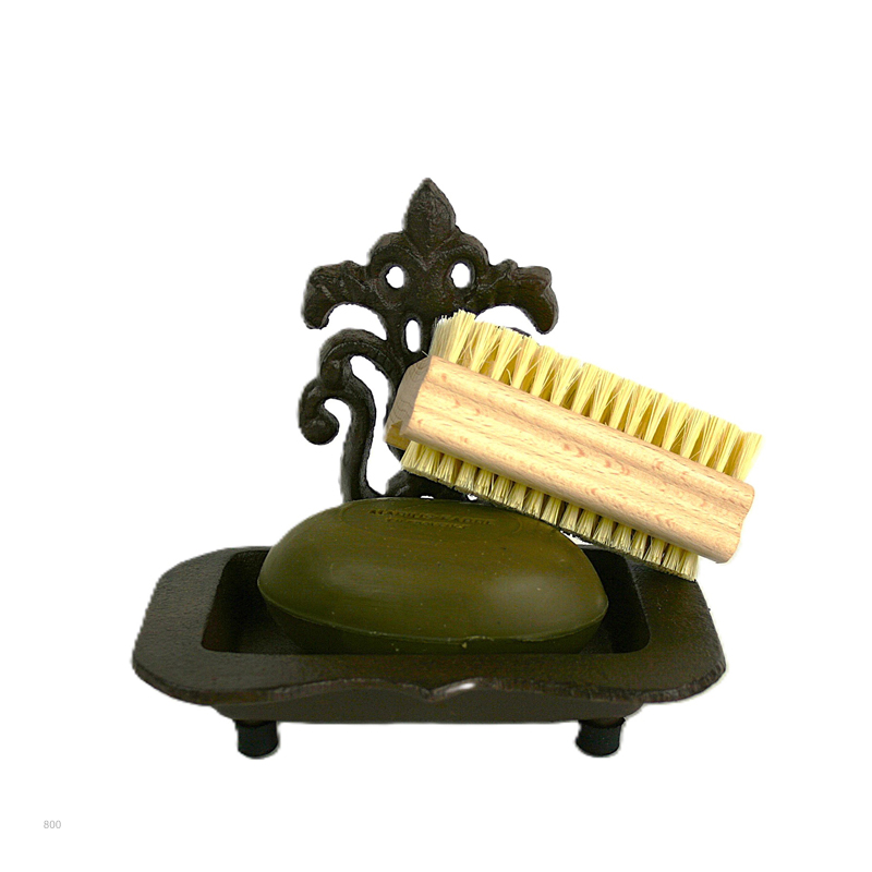 Zeepbakje van gietijzer, ouderwets en degelijk.